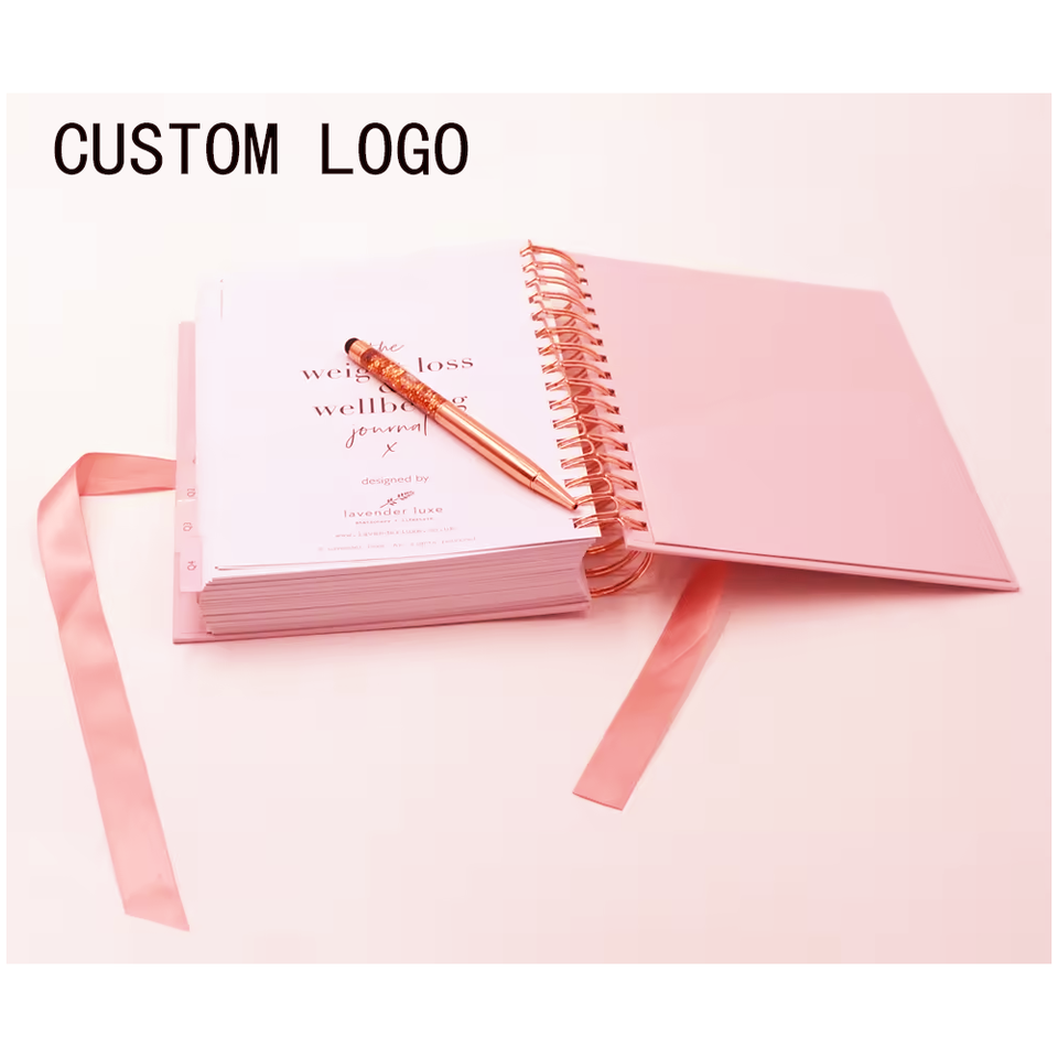 Agenda 2025-2026 con Copertina Floreale e Logo Personalizzato, Quaderno A5 con Spirale Dorata, Diario Non Datato