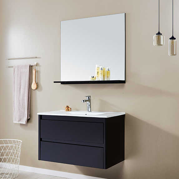 2025 31 pollici Fartory Outlet in nero lucido mobili da bagno di lusso con mensola a specchio per bagno Nihe Hotel bagno vanità