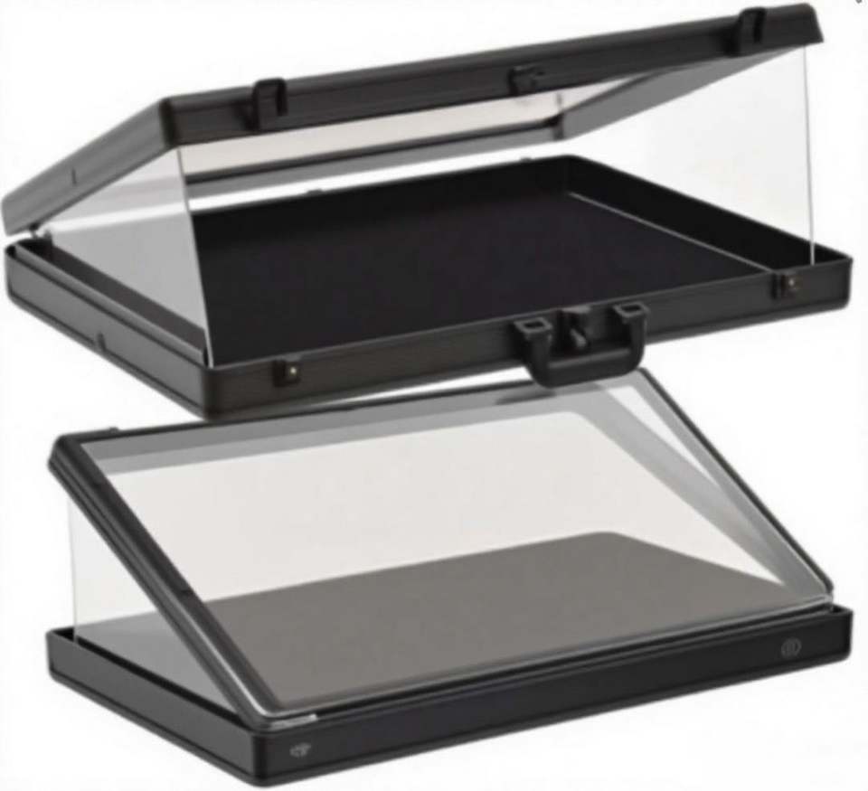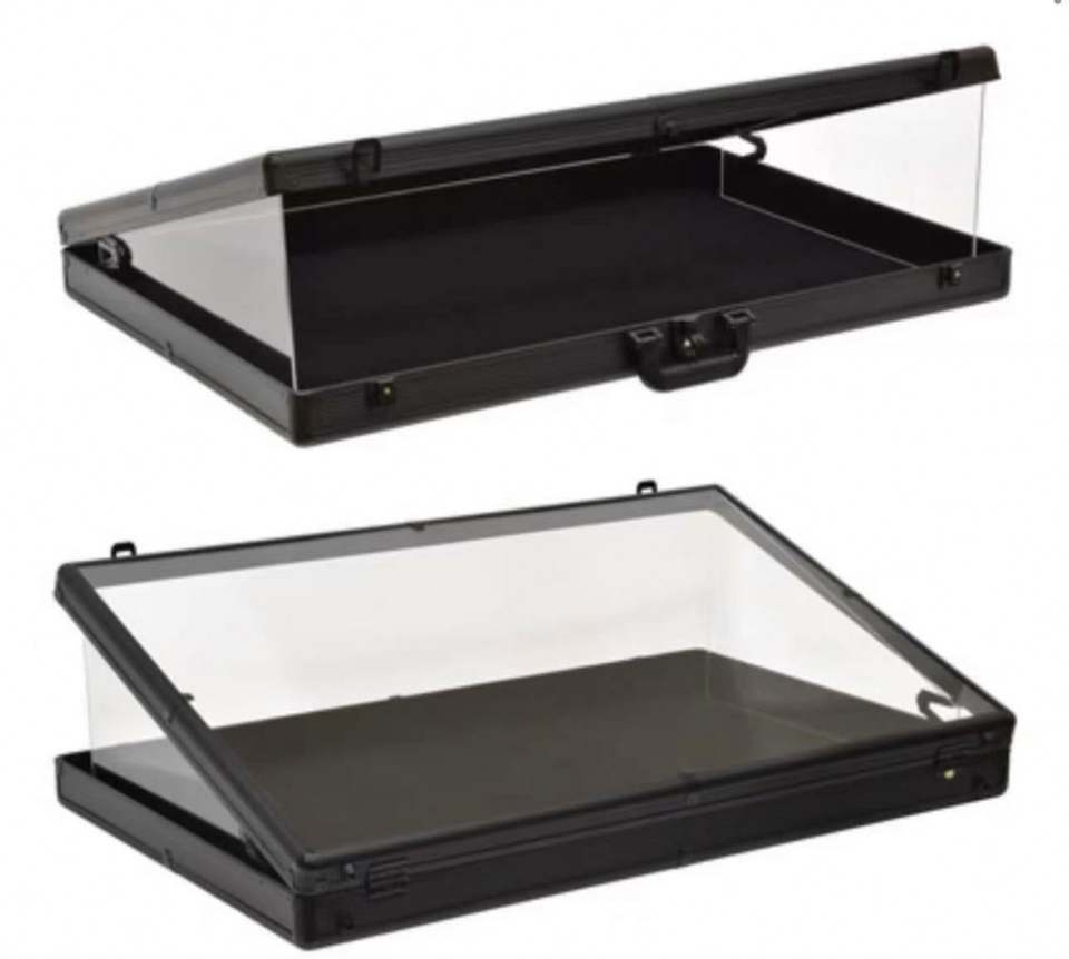 Espositore Portatile in Alluminio e Acrilico 2025 con Coperchio Trasparente per Carte TCG, con Chiusura di Sicurezza