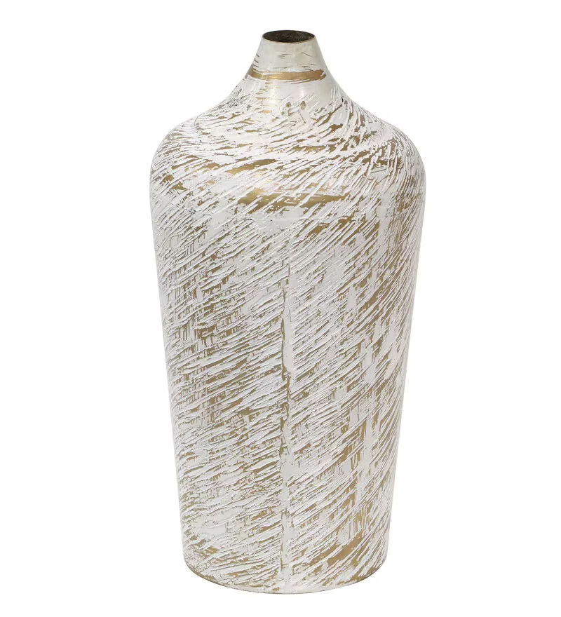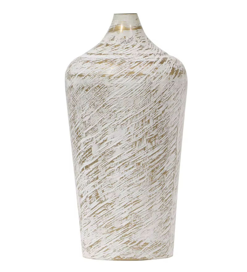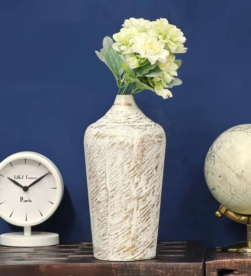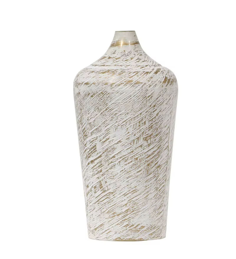 2026 Antique White Brass Metal Vase Elegant Coastal Iron Flower Vase with Handmade Plaster Design for Home Decor Living Room