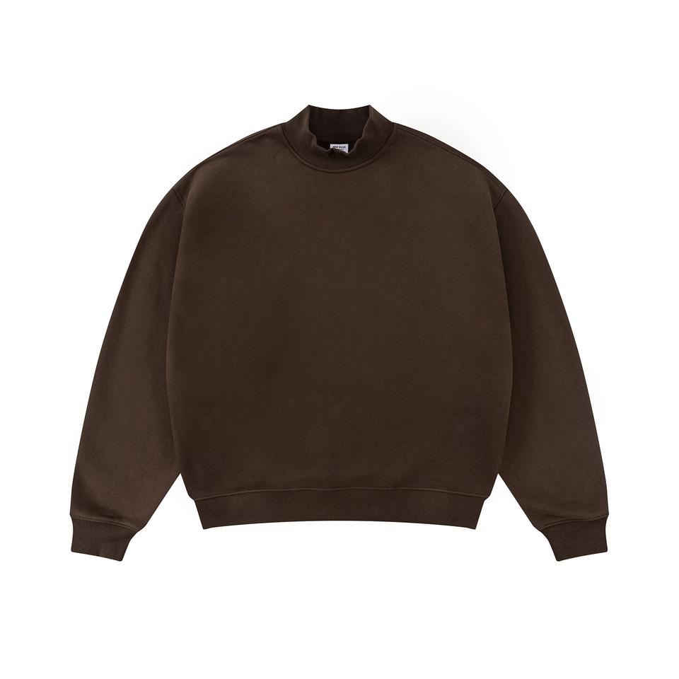Felpa Oversize Stile Americano Autunno Inverno 2025 con Collo Semi-Alto in Pile, Tinta Unita, Casual da Uomo