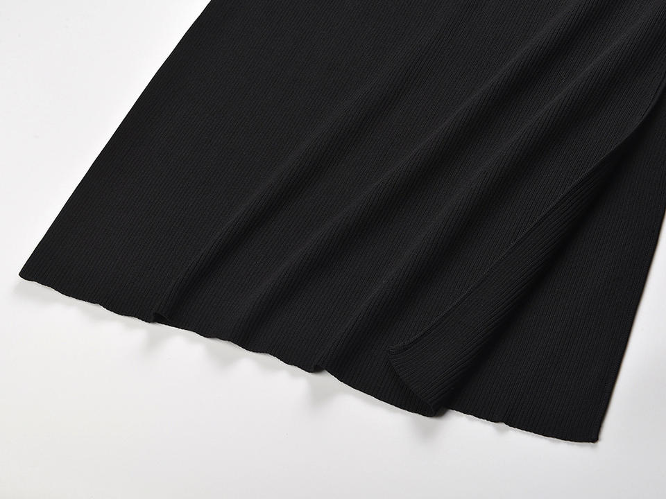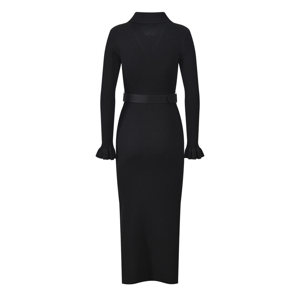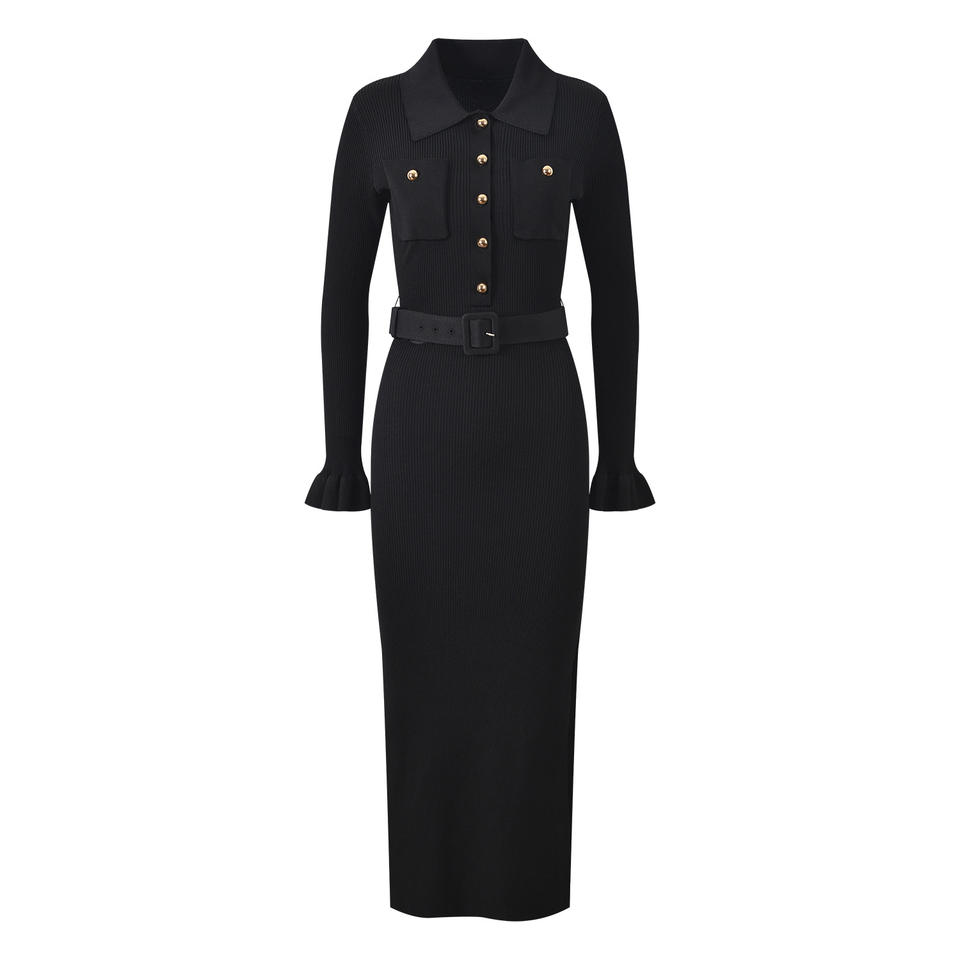 2025 Autumn Winter Elegant Slim Fit Long Dress French-Style Design Turndown Collar Lace-up Hem Slit Viscose Material Midi Length