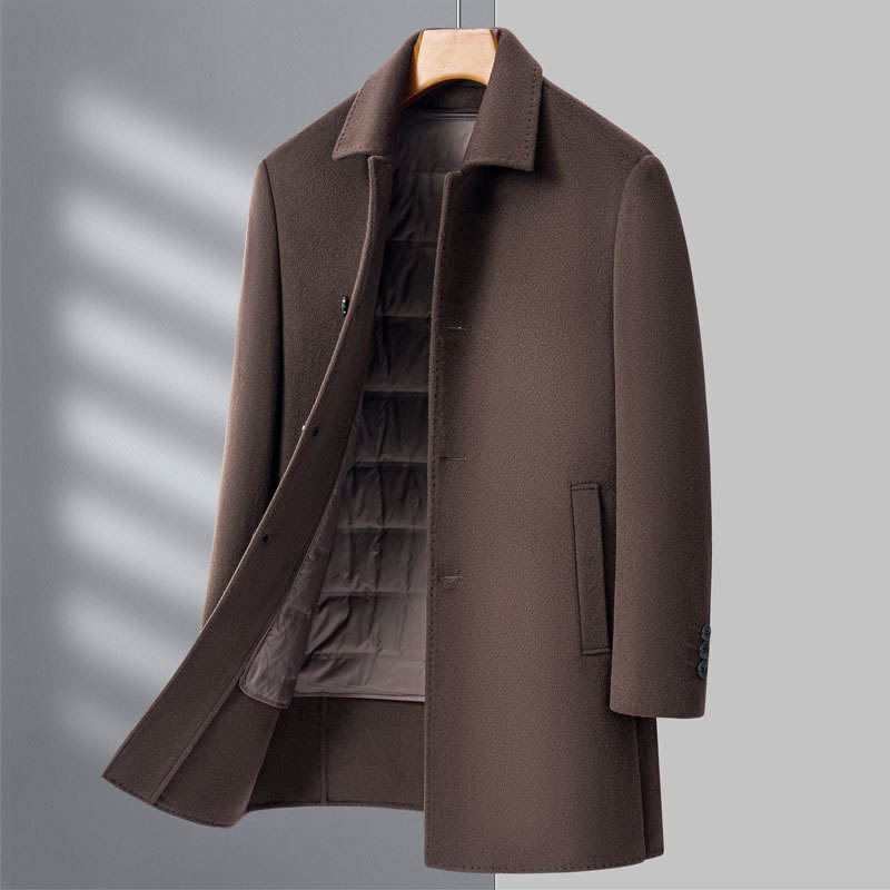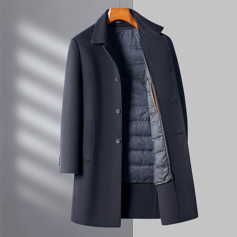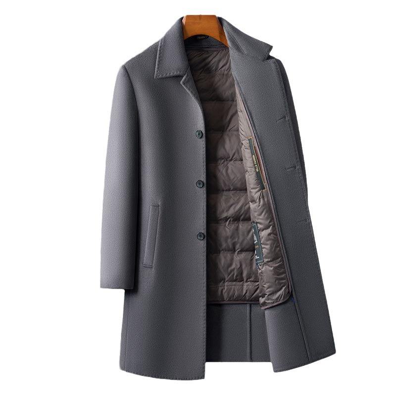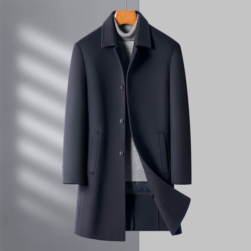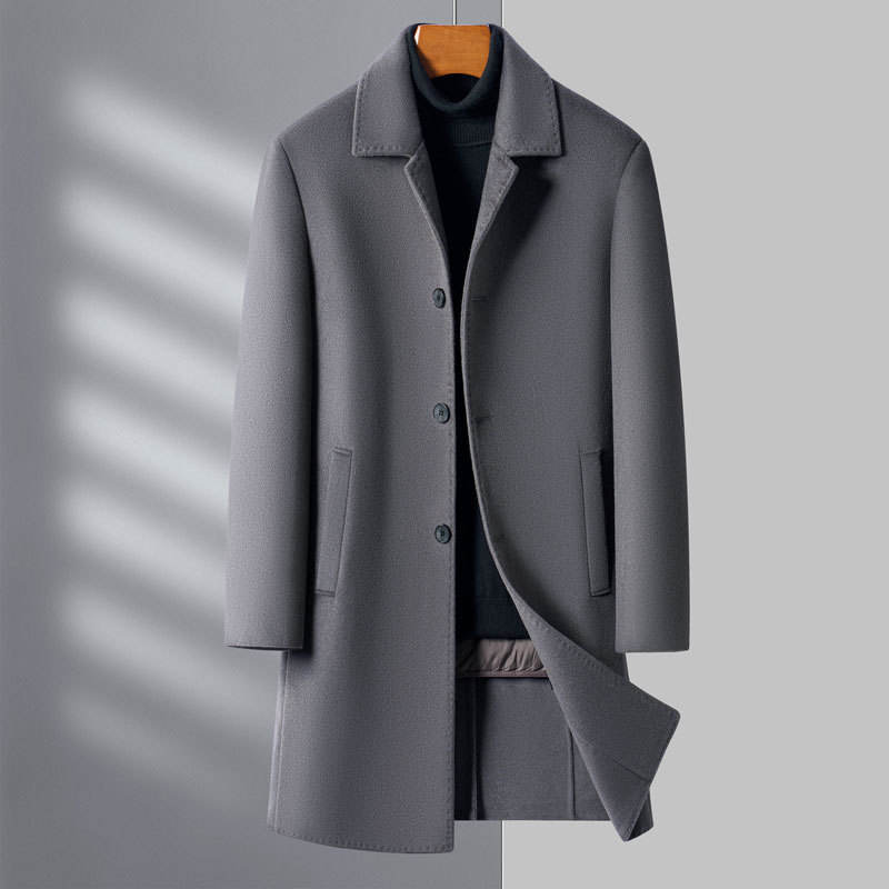 Cappotto Lungo Invernale 2025 Nuovo in Lana Doppia Faccia Spessa Monopetto da Uomo, Elegante Casual per Mezza Età, di Alta Gamma, Stile Papà