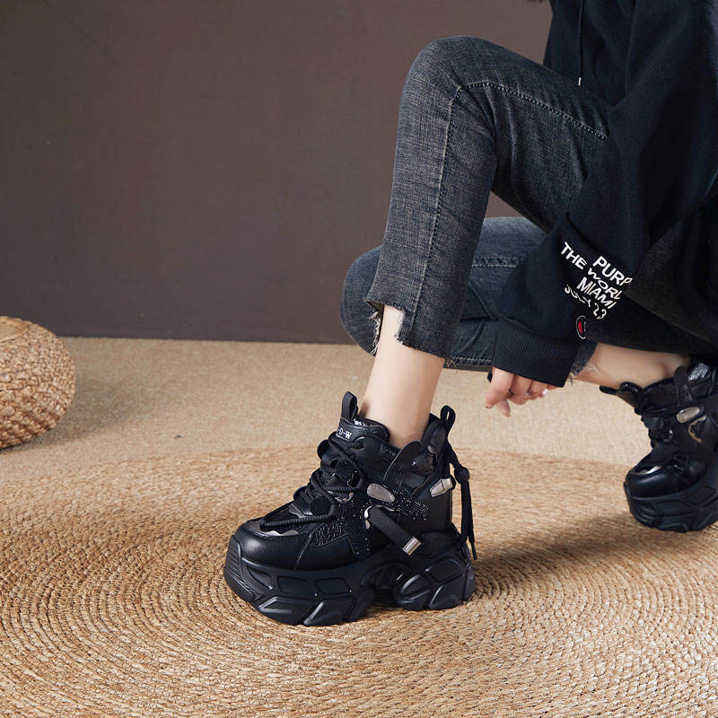 2025 Autumn Winter New Hong Kong Style Lace-up Platform Chunky Shoes Earthquake King 12cm Thick-Soled Height-Increasing Dad