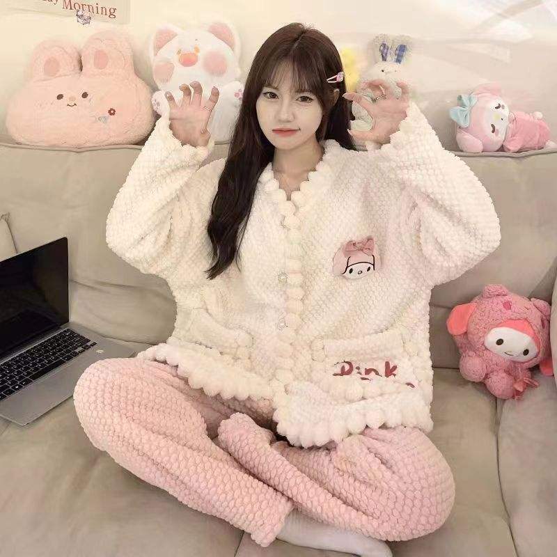 2025 Autumn Winter Panda Warm Women's Robe Outer Wear Fleece-Lined Thickened Pajamas Cute Casual