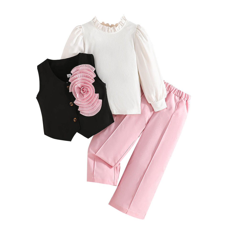 Nuovo Set Autunno-Inverno 2025 per Ragazze, Dolce ed Elegante, Completo Bianco Puro con Gilet a Maniche Lunghe e Pantaloni Larghi, Set di Tre Pezzi