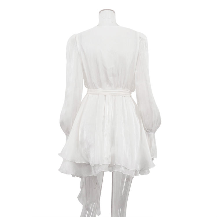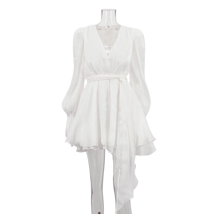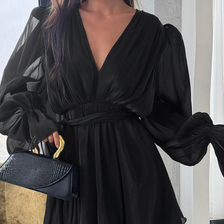 Abito da Donna 2025 con Cintura, Scollo a V, Maniche Lunghe a Campana, Vestiti di Buona Qualità, Abiti Corti per Signore