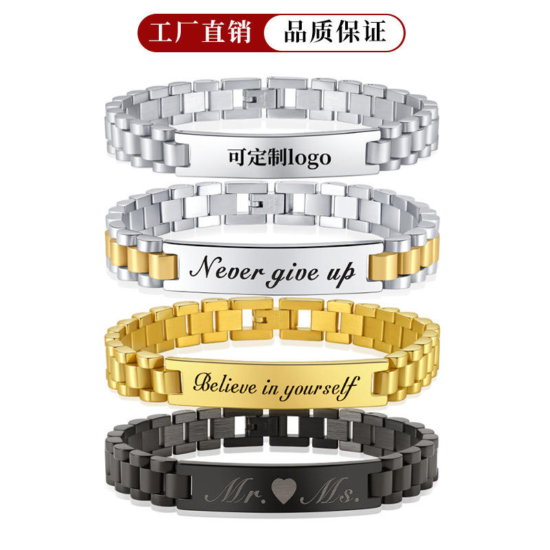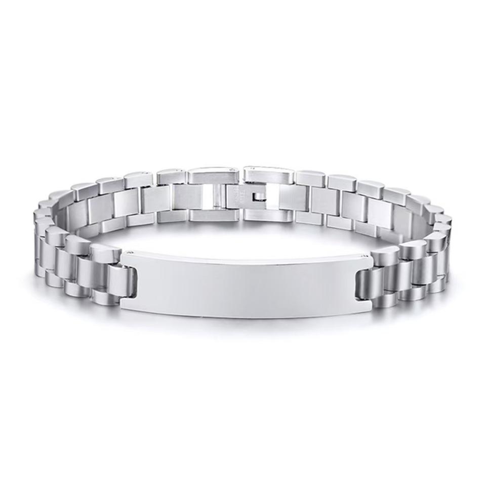 2025 Best Seller Luxury Stainless Steel Men's Curved Bracelet Can Carve Writing Strap Metal Bracelet with Engraving Bar