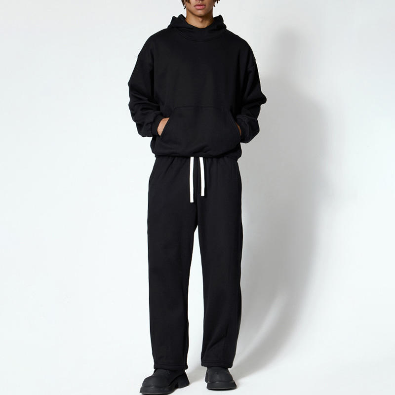 2025 Black Oversized Cotton Hoodie and Sweatshirts for Men Custom Personal Brand Tag Drop Shoulder Design for Winter