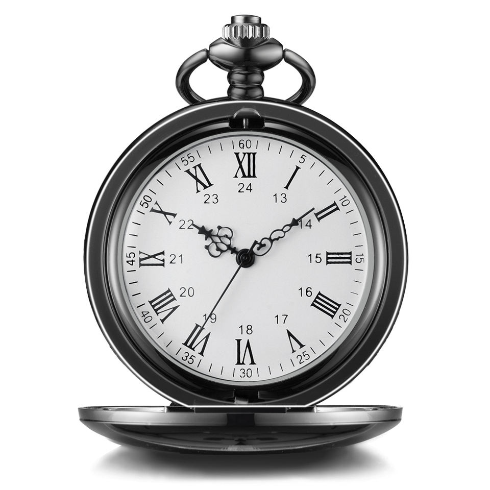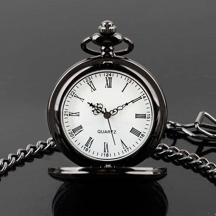 2025 orologio da tasca nero con Retro Laser elettrolitica al quarzo movimento stile antico con una vecchia catena digitale