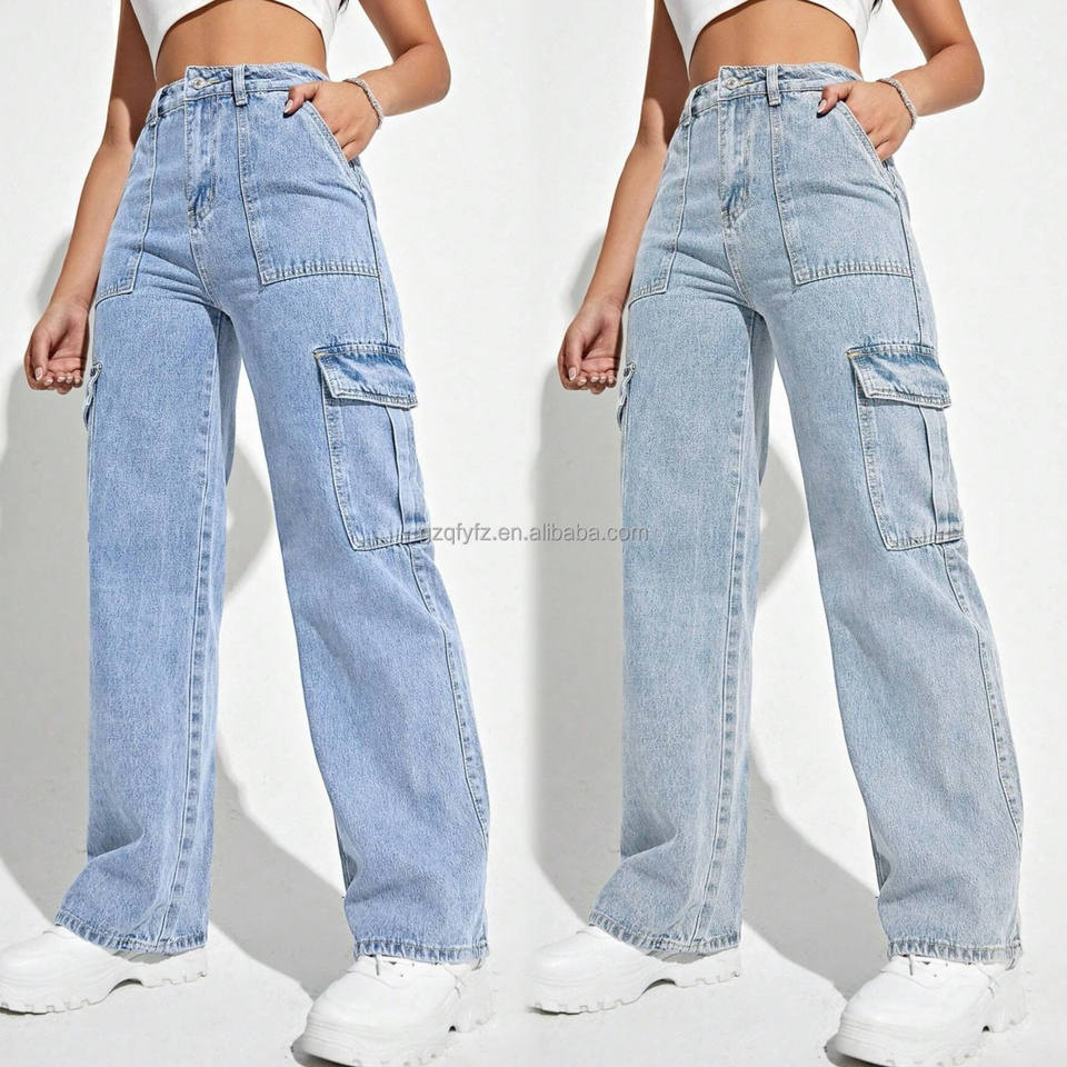 2025 Casual High Waist Classic Pocket Trousers Wide Leg Pants Denim Girls Jeans Loose Boyfriend Jeans Cargo Pants Jeans Women