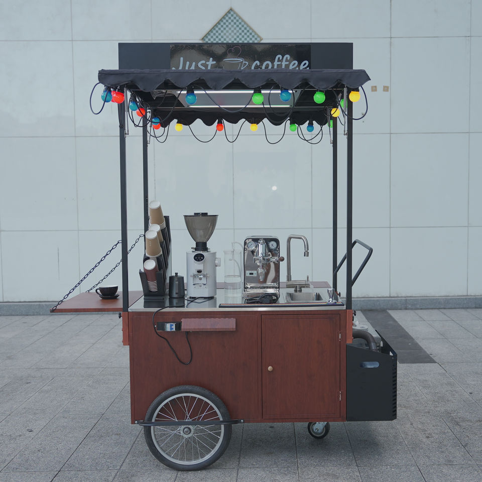 2025 condizioni nuovo carrello del caffè Mobile in acciaio inox venditore rimorchio per caffè Fast Food Business Coffee Bike