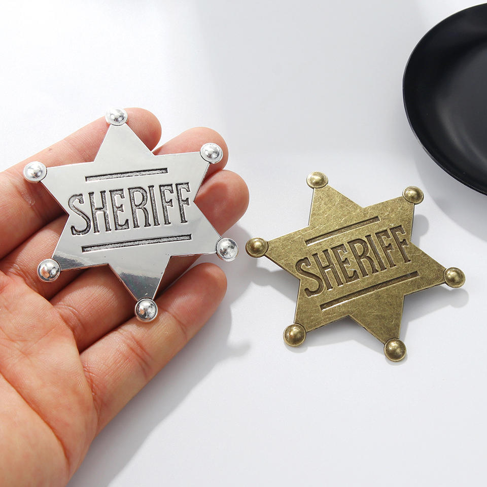 Distintivo da Sceriffo in Metallo con Design Creativo 2025, Spilla con Stemma Esagonale 3D in Rilievo Placcato Oro Personalizzato