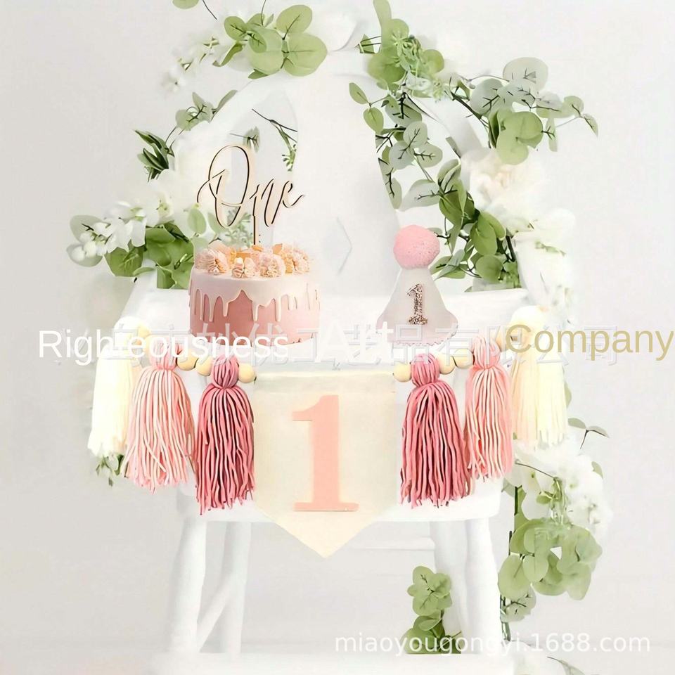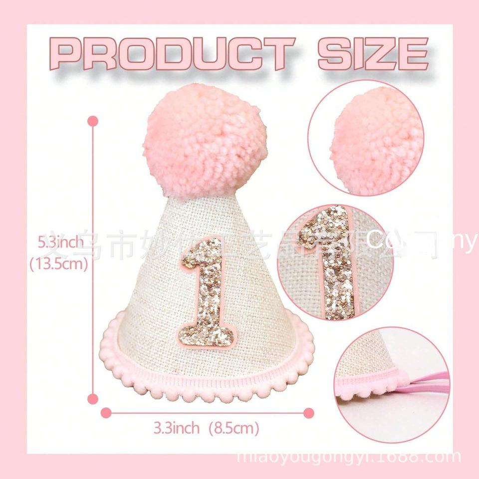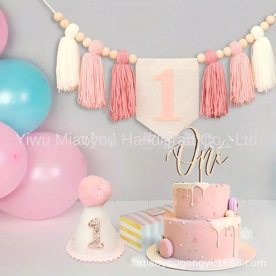 Striscione di compleanno caldo transfrontaliero 2025 per bambini di 1 anno con nappina in feltro di 1 anno con striscione di compleanno cappello impermeabile per uso interno esterno