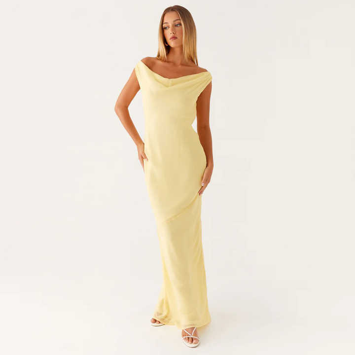 2025 Custom Elegant Women's Dresses Viscose Rayon Backless Casual Dresses Off Shoulder Cowl Neck Sexy Fashion Ladies Clothes