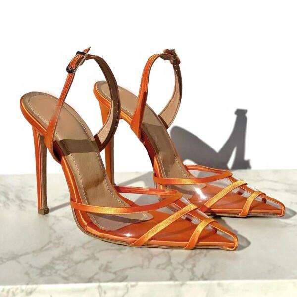 Scarpe 2025 con Logo personalizzato con tacco alto da donna in pelle scamosciata turchese PVC trasparente con Design a punta Sexy solette per abiti estivi realizzati in PU