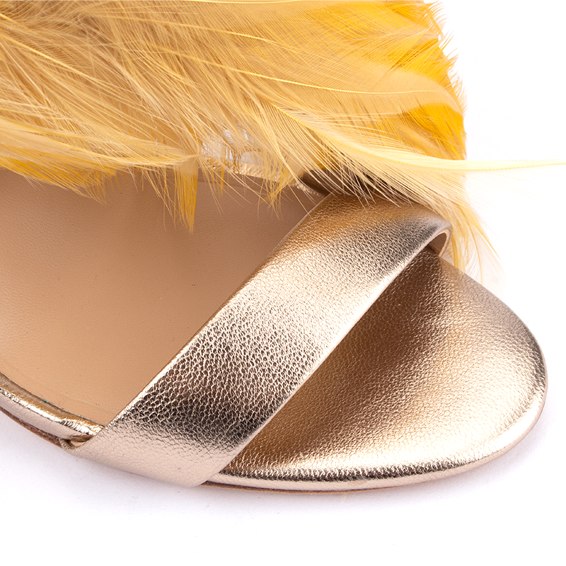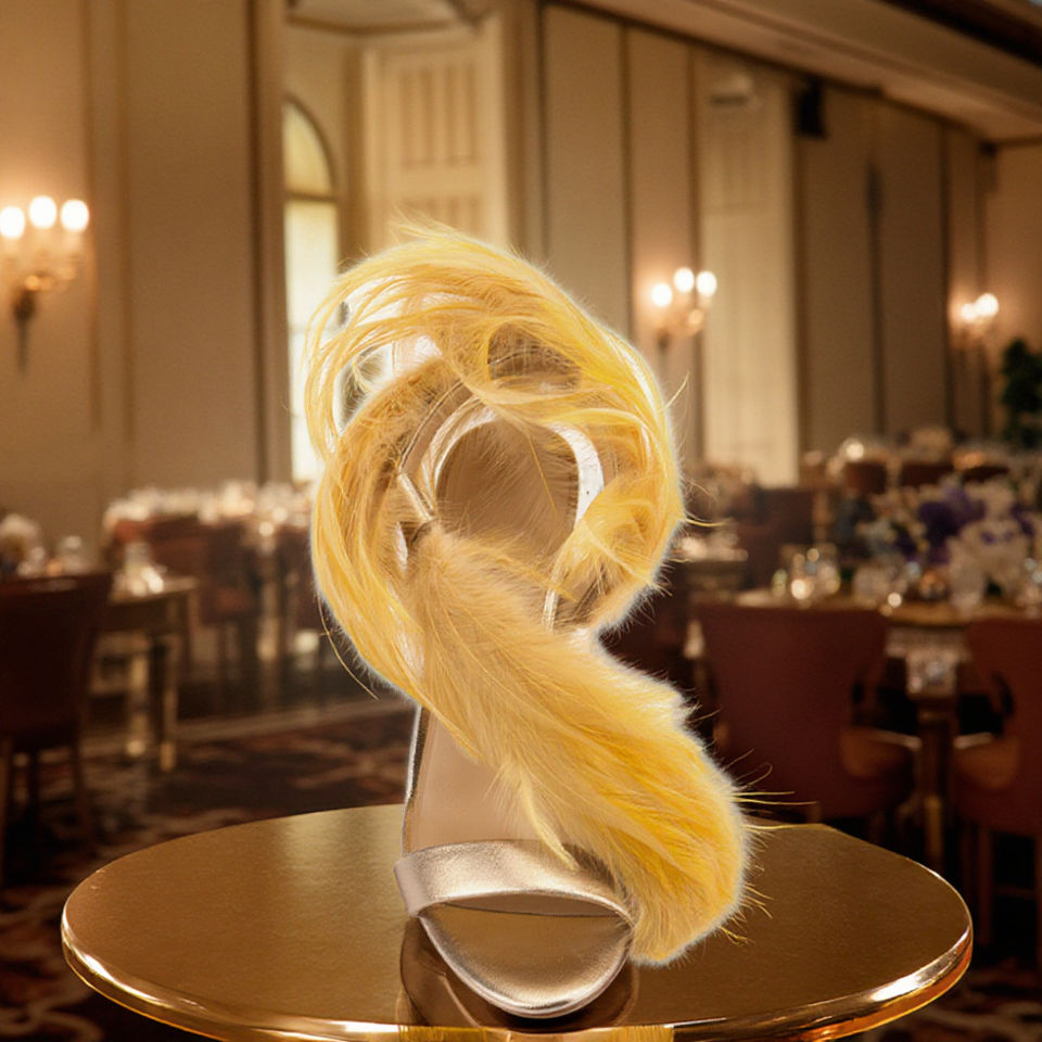 Sandali da Donna di Lusso Personalizzati 2025 con Tacco Alto in Vera Pelle, Design di Fabbrica con Cinturino a Fibbia e Tacco con Piume Personalizzato