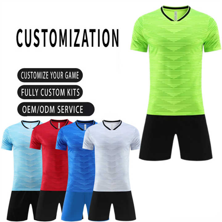 2025 Custom Men's Soccer Jersey V-neck Breathable Quick Dry Lightweight Football Shirt with Shorts Uniform Set Stock for Teams