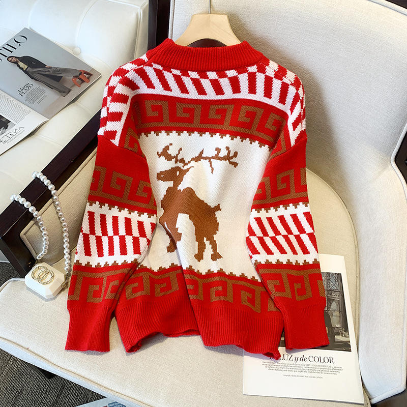 Maglione Jacquard di natale con girocollo a girocollo maglione rosso lavorato a maglia Oem personalizzato 2025