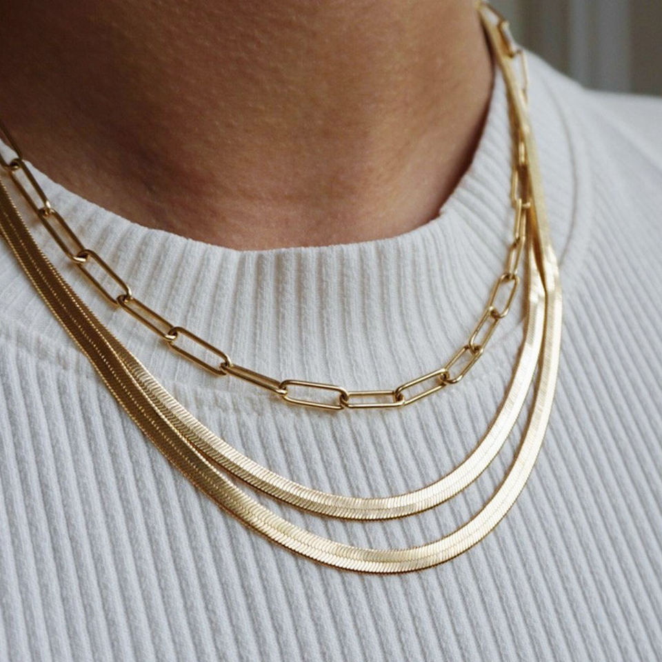 Collana a Catena Spina di Pesce in Acciaio Inossidabile Placcato Oro 18k Personalizzata Trendy 2025, Collana a Catena Snake, Girocollo Spina di Pesce