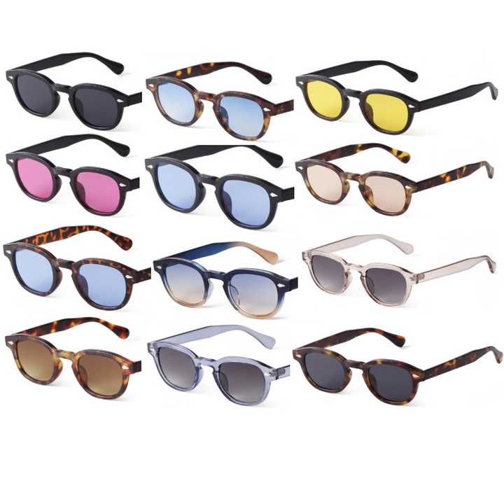 2025 logo personalizzato classico Vintage piccola montatura occhiali da sole rotondi uomo occhiali da sole neri UV400 Multicolor gradiente rivetto occhiali da sole