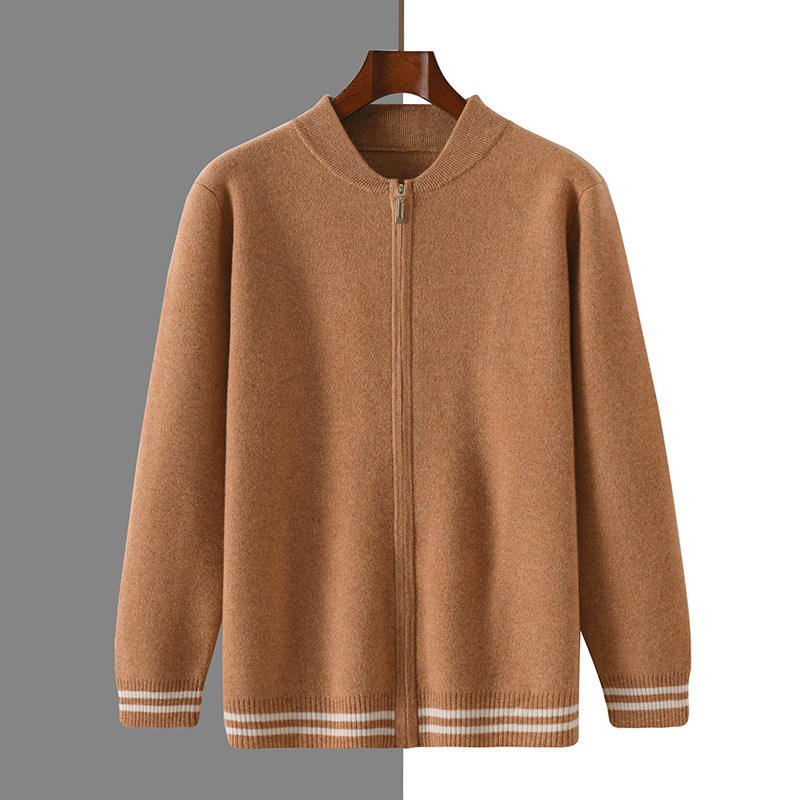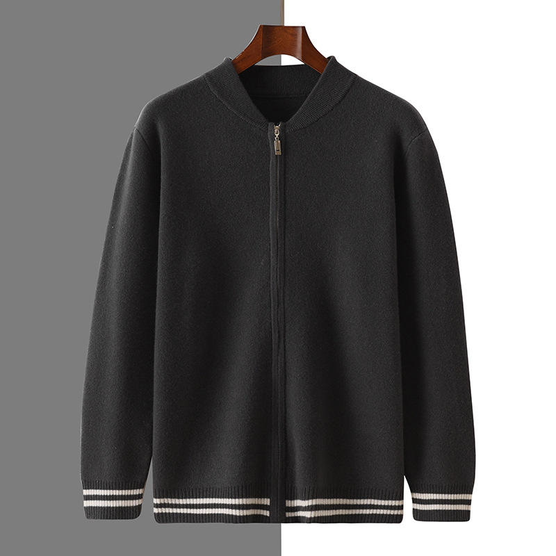 2025 cappotto maglione in lana 100% personalizzato manica lunga Full Zip classico Cardigan in morbida lana nera elegante per gli uomini