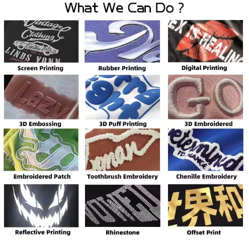 Printing Methods:Embossed, Puff Printing, Discharge Printing, Heat-Transfer Printing