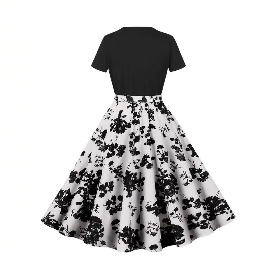2025 stile americano retrò Maxey abbigliamento da donna stampato In stile etnico transfrontaliero elegante Splicing Design In-Stock