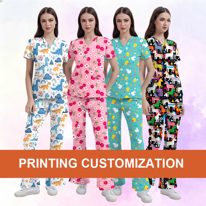 2025 Extra Large Plus Size TRS Stretchy Fabric Lovely Christmas Printing Medical Scrub Shirt for Women Doctor Nurse Dentist
