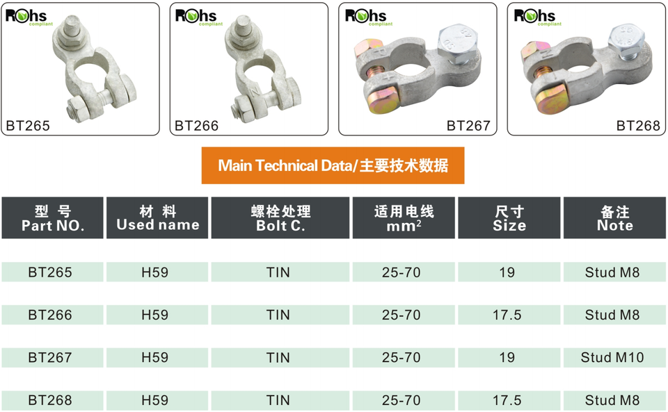 2025 di fabbrica PAI giuntura di tipo batteria per auto connettori positivi negativi morsetti a crimpare vite T YP E POST terminale in ottone in plastica rame