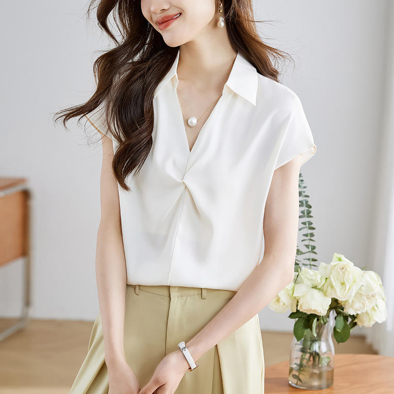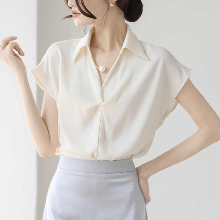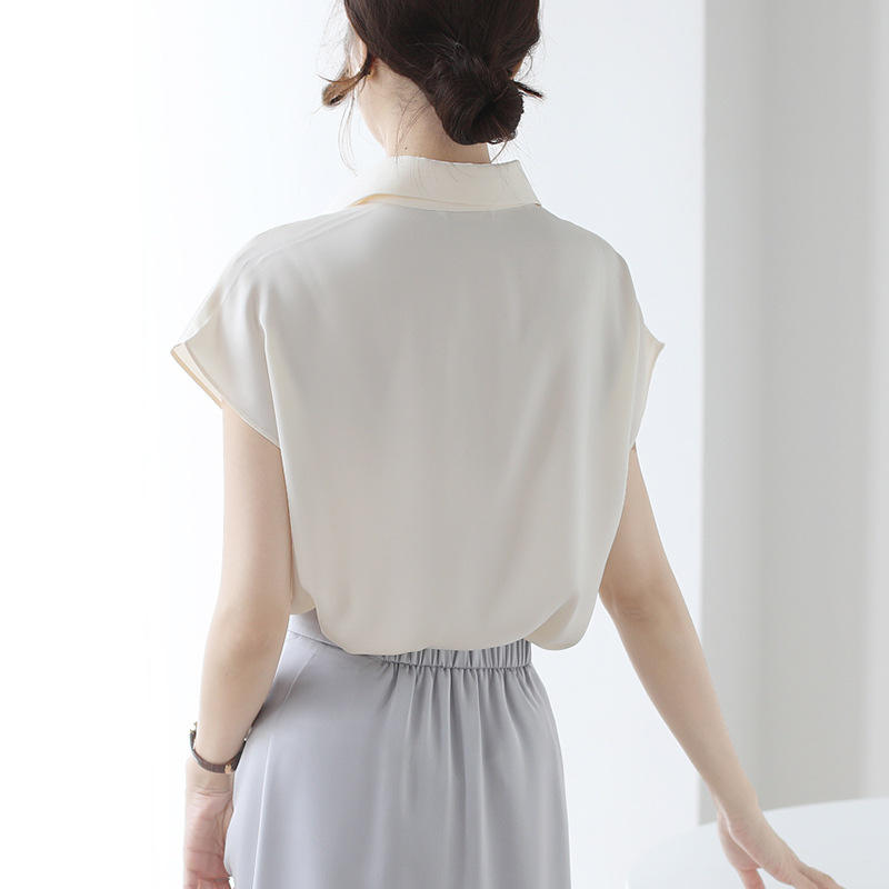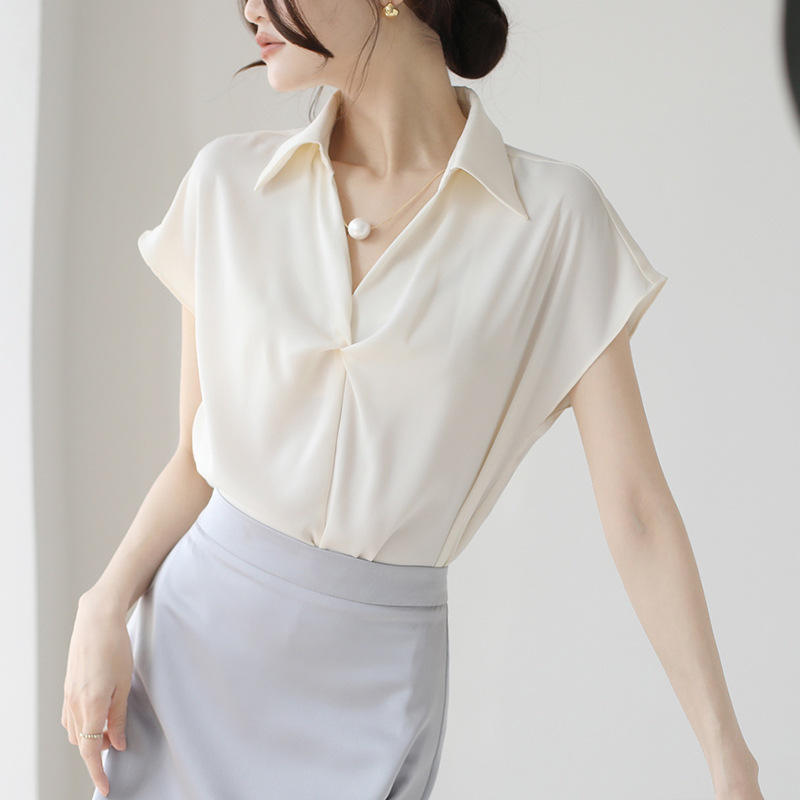 2025 camicetta in raso a maniche corte da donna in stile francese con bottone Casual abbigliamento professionale da ufficio estivo