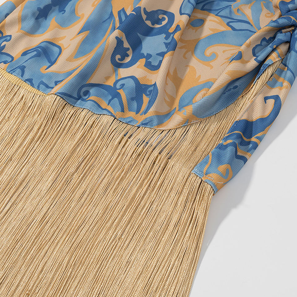 Abito Patchwork con frange 2025 stampato su misura senza maniche Maxi OEM bohémien Resort abbigliamento per abiti Casual Vintage stampati Boutique