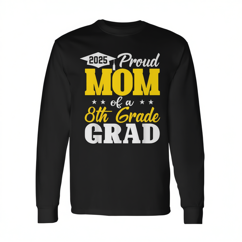Maglietta a Maniche Lunghe per Laurea 2025, Regalo per Mamma Orgogliosa del Graduato di 8a Classe, Fantastica Maglietta Promozionale