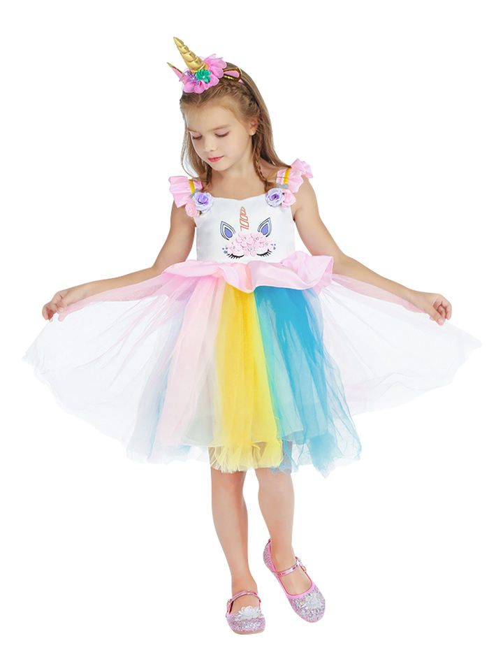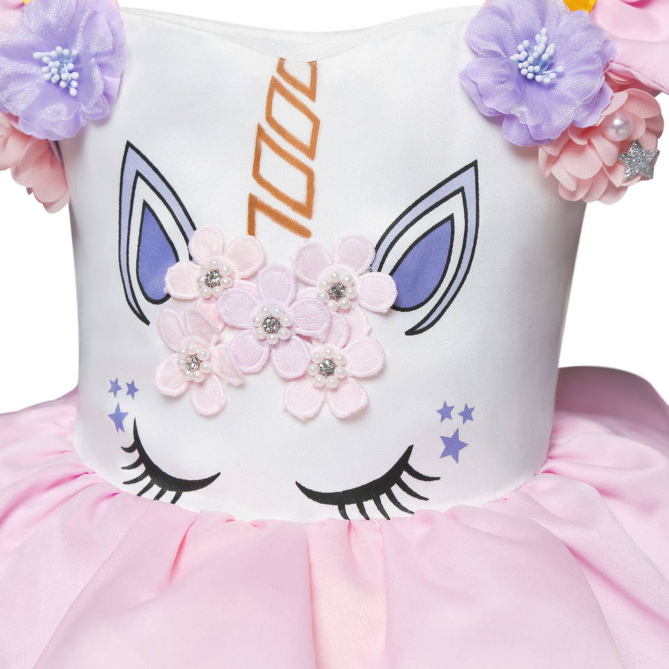 2025 Halloween Children Flower Girls Unicorn Costume Pageant Princess Party Dress Girls Dress 8 Year With unicorn Headband