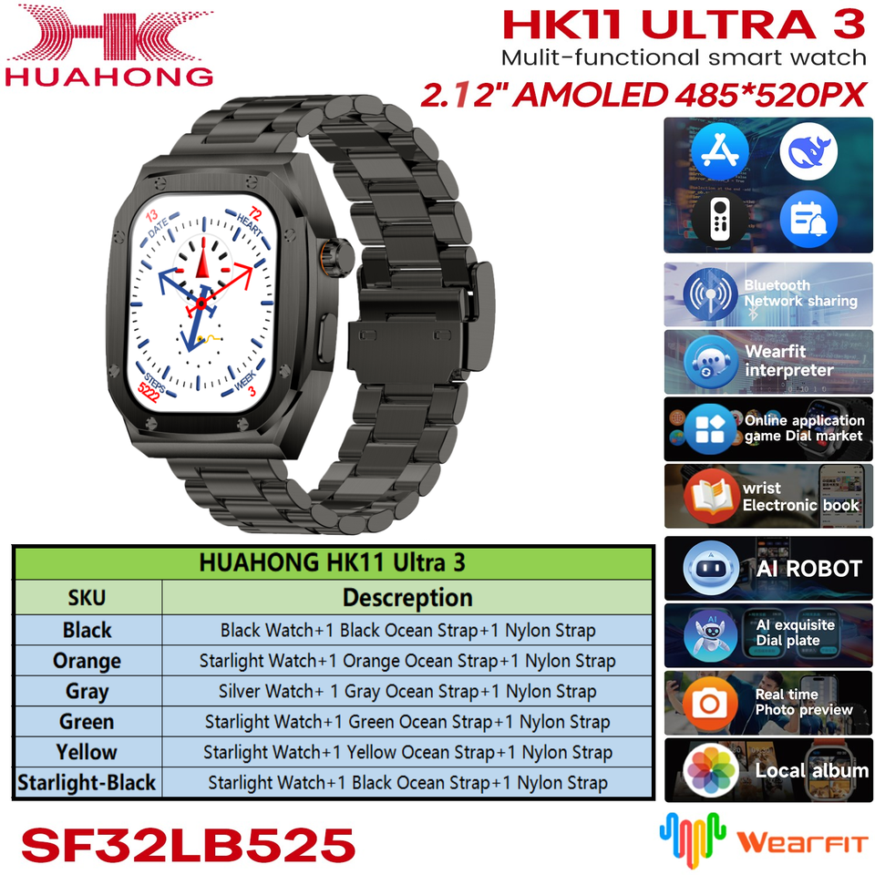 Select nowcolor: HK11Ultra3 - Black Watch+Black Silcon Strap+Nylon Strap
