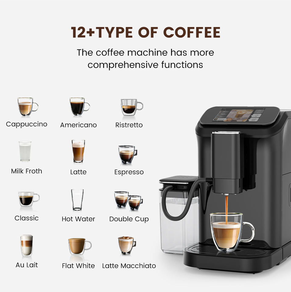 Programmable, Temprature Control, Brew System, Adjustable Grinder Settings, With Milk Box, Self-Cleaningfunction
