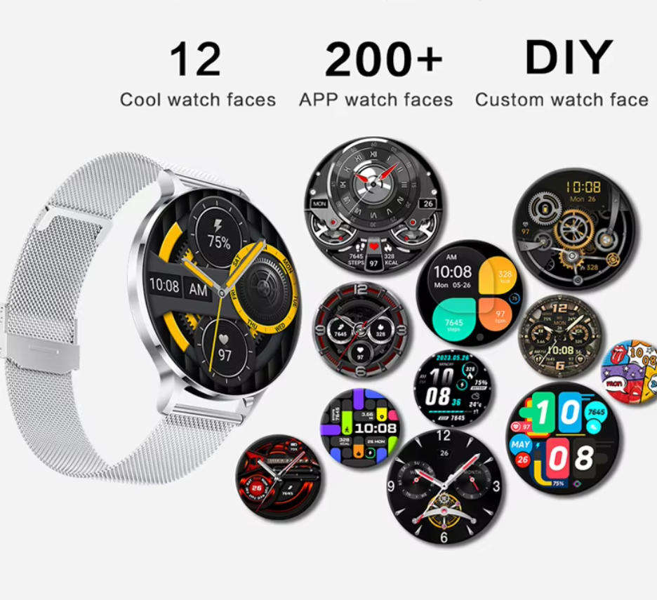 Smartwatch Android KM100 per Uomo 2025, Corpo in Lega di Alluminio, 3 Cinturini, Schermo AMOLED da 1,75 Pollici, Chiamate, Quadranti Personalizzabili, Nuovo Modello