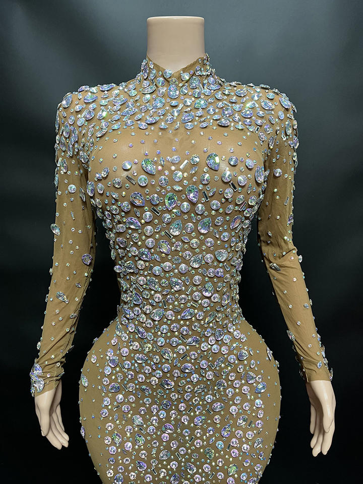 2025 nuovo e caldo abito da sera Sexy con diamanti di colore rosso scintillante in rete alla moda abito lungo da Senior