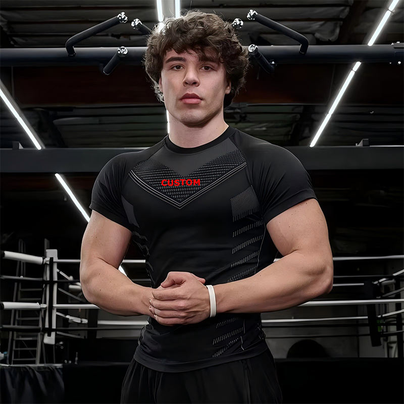 2025 Hot Sale Summer Men's Breathable Rash Guard Casual Fitness Clothes High Elastic Short Sleeve Sportswear Compression Shirts
