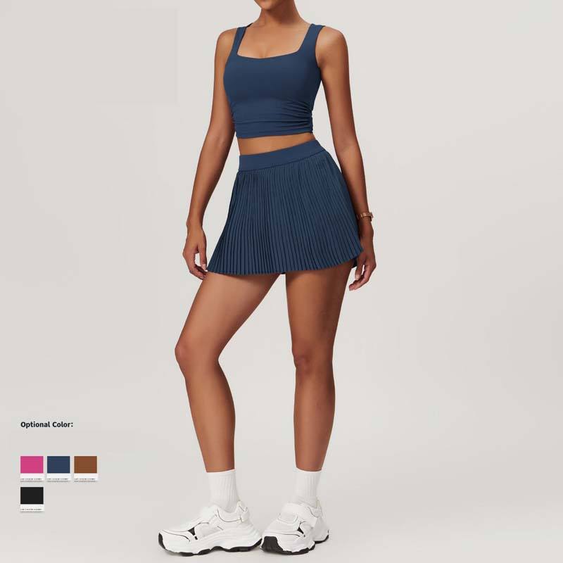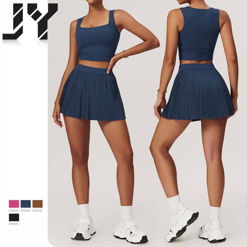 2025 Hot Sale Summer Sports Gym Clothing Two Piece Yoga Wear Athletic Golf Tennis Short Skirt and Top 2 Piece Skorts Set