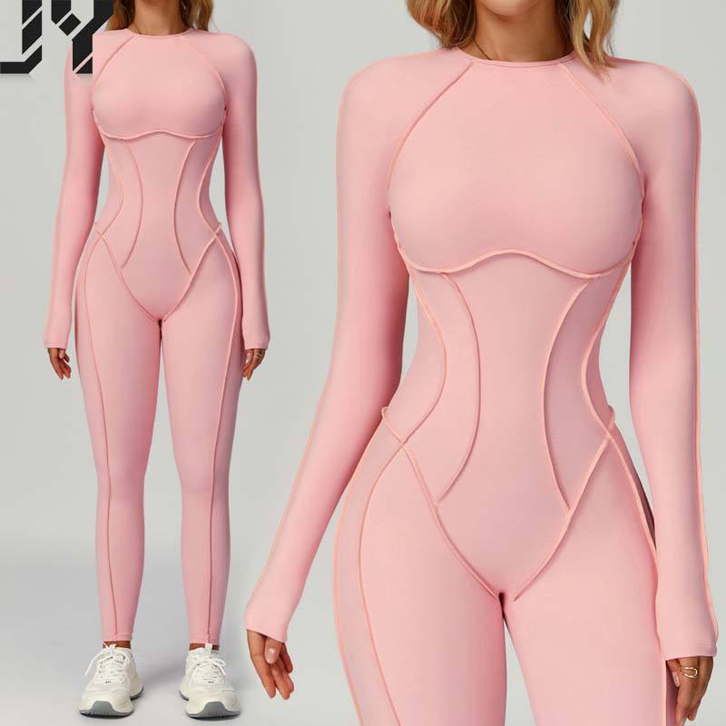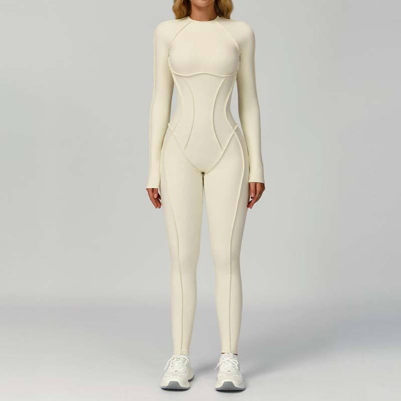 Tuta Intera Aderente a Maniche Lunghe in Tinta Unita, Nuova Collezione 2025 - Elegante Jumpsuit per Yoga e Fitness
