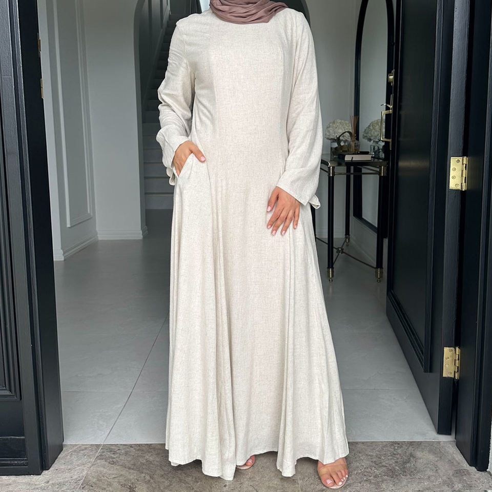2025 vendita calda Abaya con coulisse regolabile in lino da donna abiti modesti moda abbigliamento islamico abito lungo musulmano Abaya