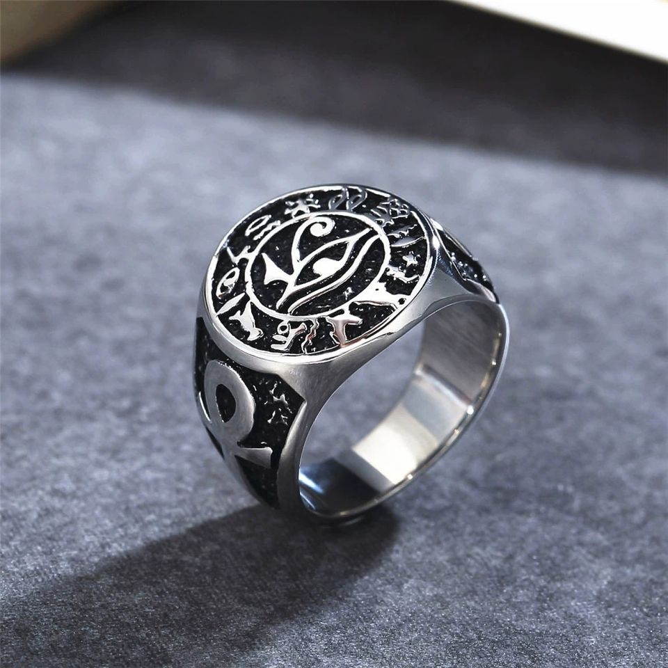 2025 personalità di vendita calda retrò egitto faraone occhio Anubis morte croce anello in acciaio al titanio