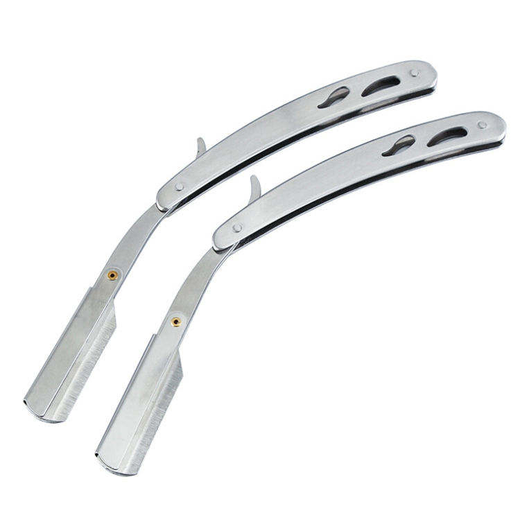 2025 vendita calda lame con Logo personalizzato rasoio da barba nero manico solido in acciaio inossidabile barbiere rasoio a bordo dritto