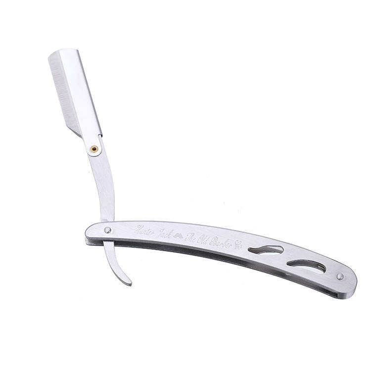 2025 vendita calda lame con Logo personalizzato rasoio da barba nero manico solido in acciaio inossidabile barbiere rasoio a bordo dritto
