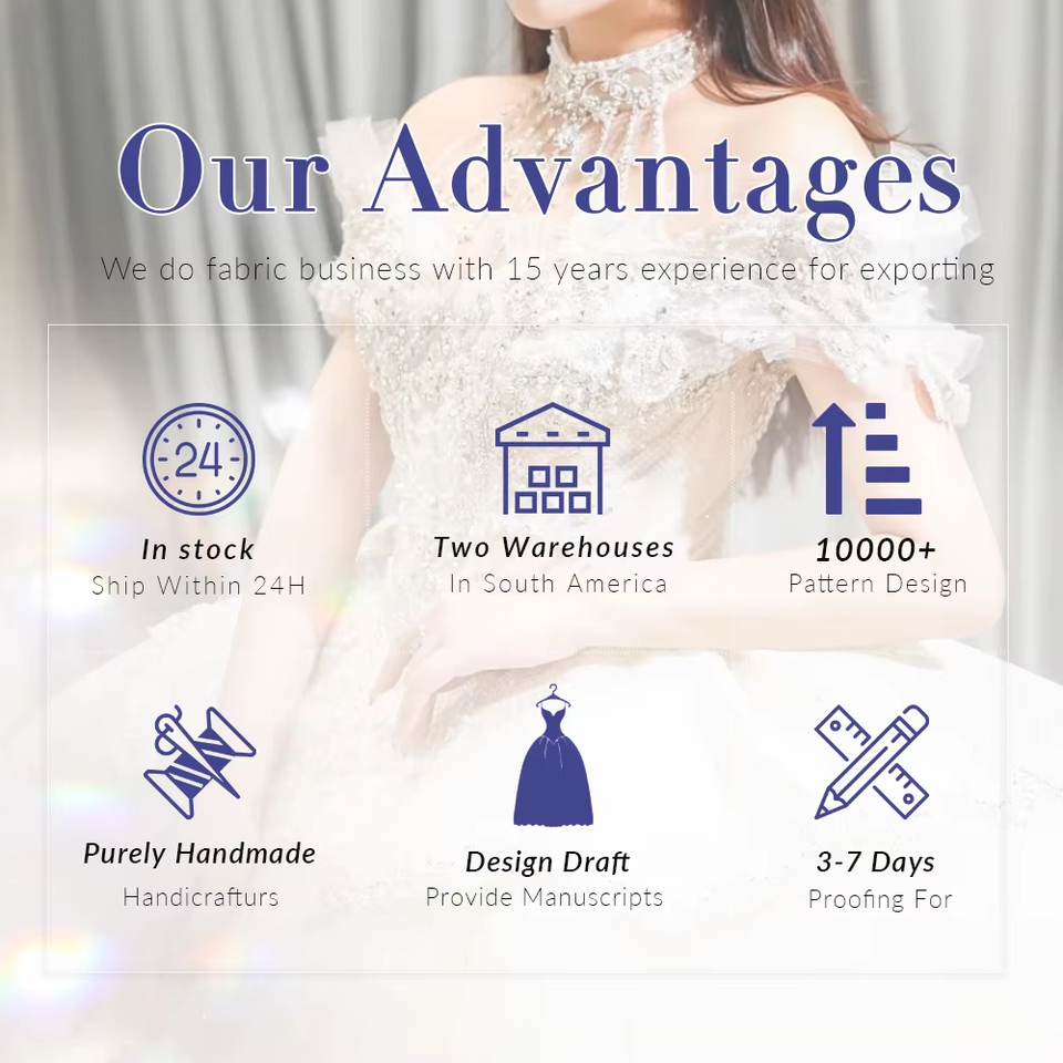 2025 Hot Style Elegant Charm Little Diamond Mesh Fabric 3d Flower 3d Embroidered Fabric in Mexico for Bridal Dress
