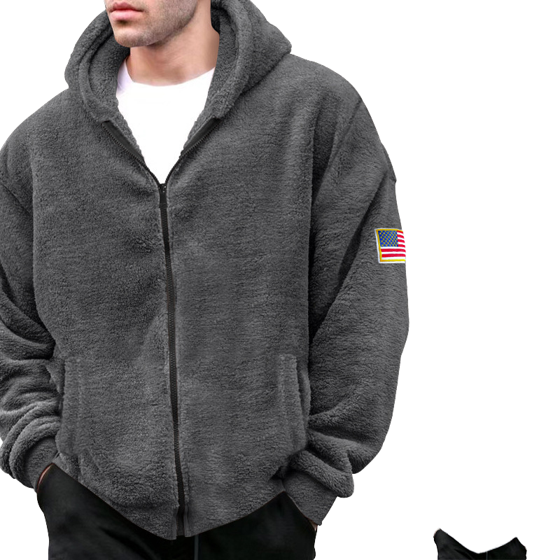 Giacca Bomber Invernale da Uomo 2025, Nuovo Modello con Doppio Strato in Pile, Calda con Cappuccio e Zip, Logo Bandiera, Stile Casual Streetwear
