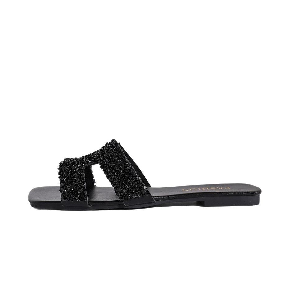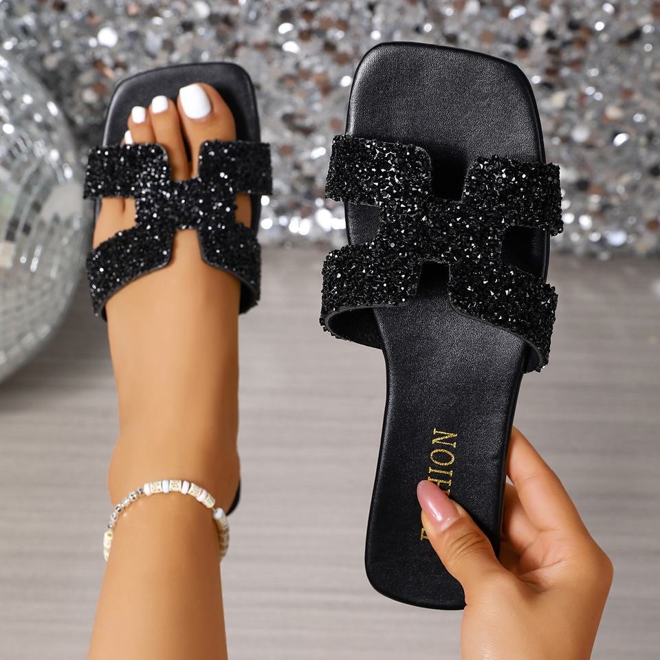 2025 Nuove Ciabatte Nere Comode con Punta Quadrata Stile Francese per Donna, Ideali per la Spiaggia e il Pendolarismo