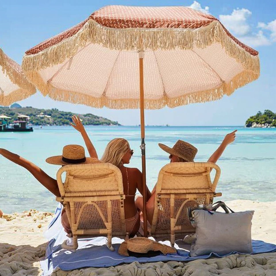 luxury vintage fringe outdoor beach umbrellas with tassels
