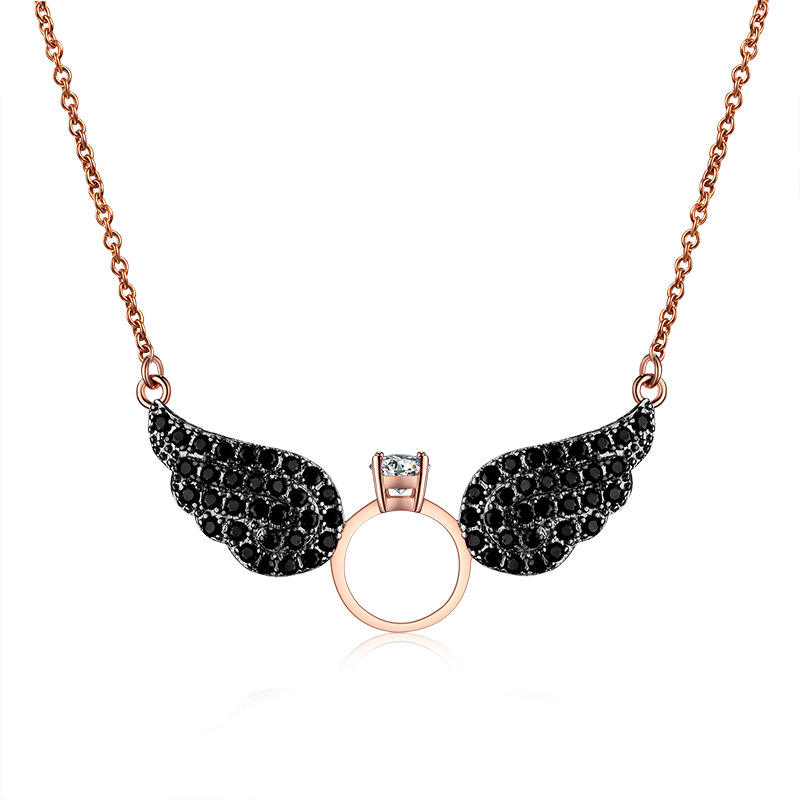 2025 MS Fashion Short Pendant Wholesale New Japanese and Korean Angel wings Full of Diamond Crystal Necklace